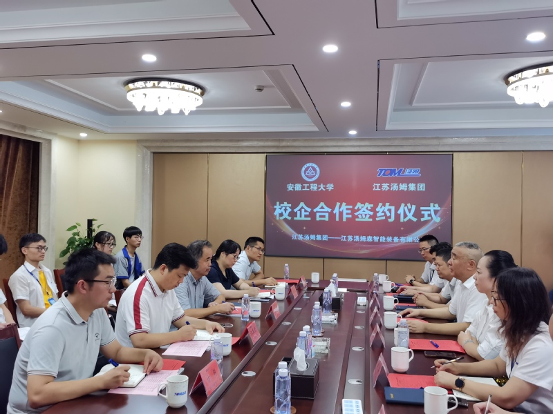 为做好2022届毕业生就业工作,巩固就业市场,加强校企交流,9月25日,机械工程学院(77779193永利官网)党委书记伊长文、党委副书记李文江、副院长江本赤、智能制造系主任刘玉飞、教学秘书方明、毕业班辅导员程雷一行赴常州市江苏汤姆集团就人才培养与就业基地合作建设进行洽谈,并回访2021届毕业生。