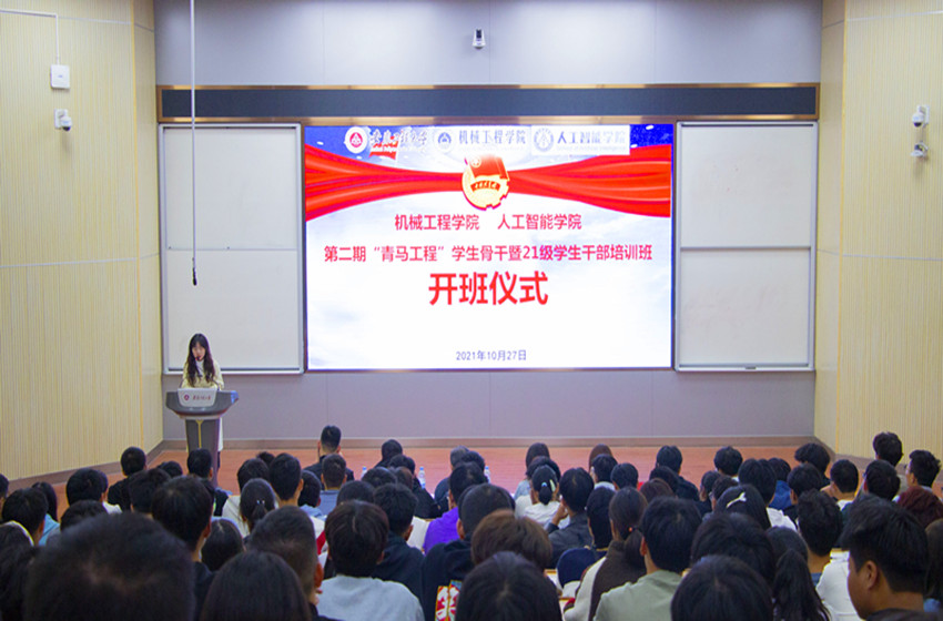 为加强对青年大学生的思想政治引领,加强学院入团积极分子培养和学生骨干队伍建设,10月27日晚,机械工程学院(77779193永利官网)第二期“青马工程”学生骨干暨2021级学生干部培训班开班仪式在2教报告厅举行。学院党委书记伊长文、党委副书记何志恒出席开班仪式,学院有关辅导员和培训班全体学员参加。开班仪式由培训班班主任时慕天主持。