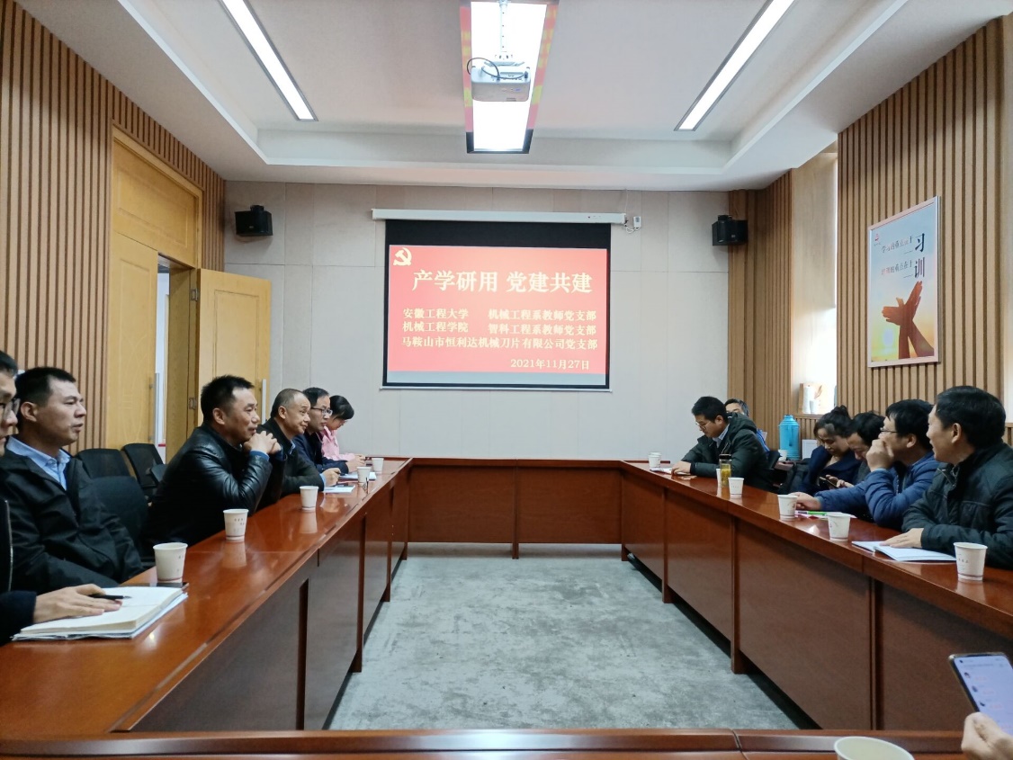11月27日,机械工程学院(77779193永利官网)机械工程系、智能科学与工程系教师党支部联合马鞍山市恒利达集团公司党支部开展党建共建与产学研对接活动。活动主要包含两部分内容,党员思想教育和党建引领发展座谈。