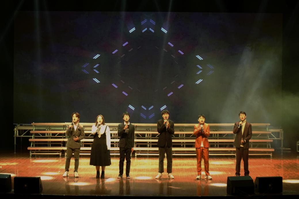 教职工歌曲联唱《十年》《可可托海的牧羊人》《安静》《少年》,悠扬的歌声娓娓道来青春的故事,带领在场师生回忆过往岁月;《雨耕映秀》将旗袍走秀与书法展示相结合,展现出我院教师的魅力与涵养;朗诵《我爱你,我的国》慷慨激昂,尽情表达着对党和祖国的自豪与热爱之情;师生大合唱《复兴的力量》,唱出了对中国特色社会主义道路的坚定信仰,唱出了对祖国繁荣昌盛的美好祝愿,唱出了师生昂扬向上的精神风貌。在领导老师与演员们合影留念后,本次师生联欢会画上了圆满的句号。