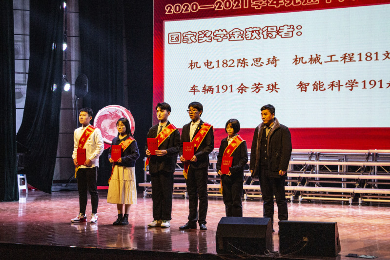 场大屏幕一一展示了自立自强、不负青春,将青春浸满奋斗汗水的“中国大学生自强之星”李增产;团学工作强锻炼,志愿服务展风采,于创新中进取,担当勇作为的“全国优秀共青团员”周宇航;坚持“清朗网络空间”的新时代道德示范青年、 校“十佳大学生”潘颢;创新引领发展,科技塑造未来,以赛促学,自强不息的学科竞赛获奖代表机器人张帅等人;班风优良,作风过硬,学风浓厚,互助友爱,众志成城,共同创造班集体辉煌的机电192等先进班集体;学思至深,精神浩瀚,用行动突破自我,用行动诠释优秀的陈思琦等国家奖学金获得者以及“三好学生标兵”、“学生干部标兵”、“科技活动标兵”、“社会活动标兵”。获奖学生和班集体的先进事迹给现场观众留下了深刻印象,赢得阵阵掌声。在响彻全场的掌声中,与会领导为先进集体、先进个人颁发荣誉证书。