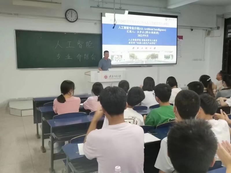 9月5日晚,智能科学与工程系在校本部6号教学楼召开了新生专业介绍会,班会分别由系主任赵转哲博士和省青年皖江学者汪步云博士主持,智科系所有专业老师和2022级人工智能专业、智能科学与技术专业全体学生参加。