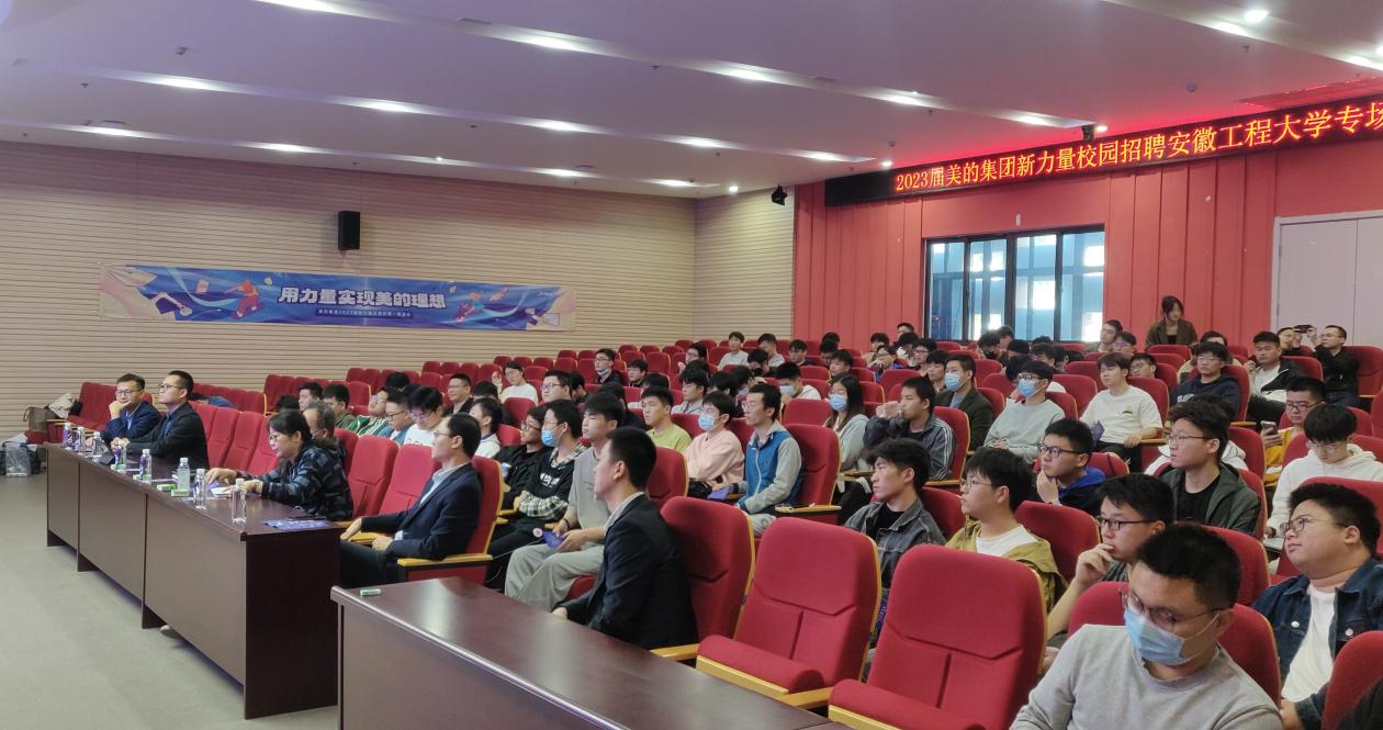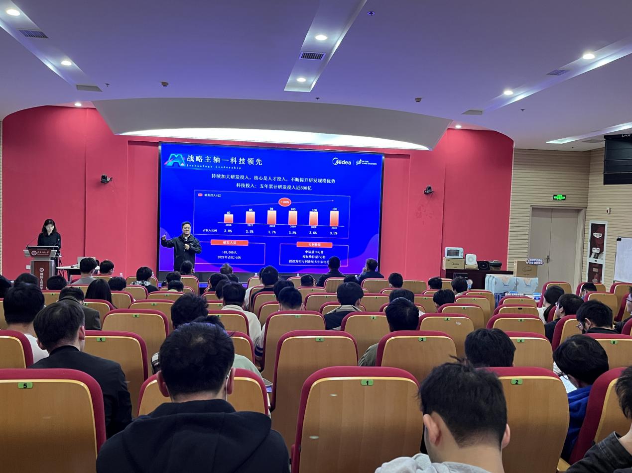 芜湖美智公司代表通过高管分享、校友分享、城市总监分享、校招安排以及问答环节进行宣讲,向同学们介绍了公司的发展历程,并就公司的发展平台、专业实力、成长方向、未来发展前景、校园招聘相关政策等进行详细介绍,同时表达了希望同学们到公司实习、工作的愿望。同学们认真听企业讲师的介绍,就具体的工作内容、薪资、成长路径等进行交流互动,现场气氛热烈活跃。