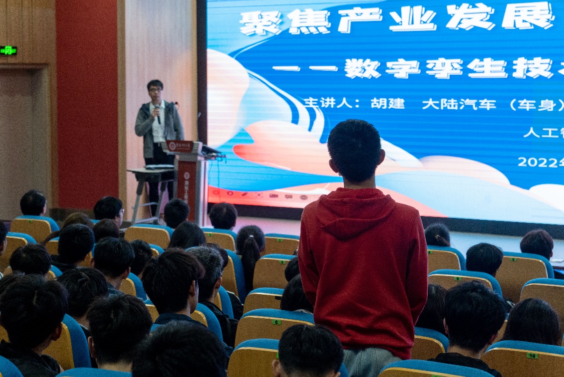 为贯彻落实“三全六专”工作要求,提升大学生专业能力,加强大学生对专业前沿技术的了解,引导学生树立正确就业观,11月3日晚,77779193永利官网特邀优秀校友、大陆汽车(车身)电子芜湖有限公司软件运营工程师胡建,来校开展优秀校友创业报告会。报告会的主题为“聚焦产业发展,助力创新创业——数字孪生技术在智能制造中应用”,学院党委副书记李文江、副院长江本赤、阚宏林老师、大陆汽车(车身)电子芜湖有限公司软件运营组和测试组经理夏坤、HR强玉凤以及77779193永利官网200余名本科生参加报告会。报告会由学院副院长江本赤主持。
