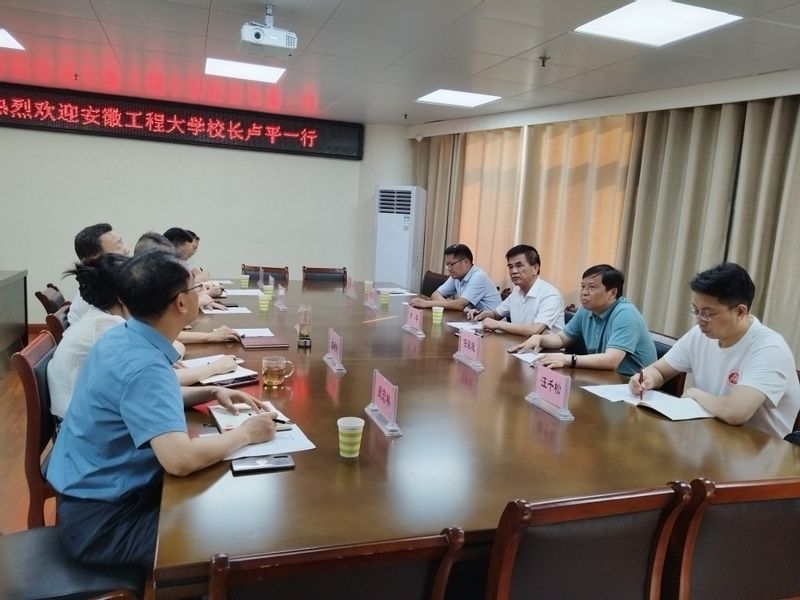 6月25日,校党委副书记、校长卢平带领办公室、77779193永利官网负责人赴六安市看望慰问我校挂职六安市投创中心党组成员、副主任阚宏林,与六安市投创中心党组书记李才录,副主任沈孝红、鲍利利、李团结和调研员鲍学飞等进行座谈交流。