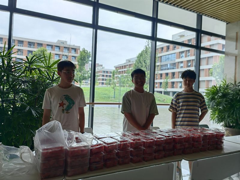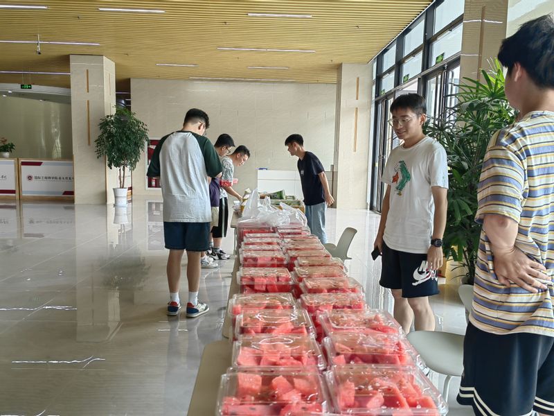 为了此次慰问活动顺利开展,学院设置了服务台,提前准备了西瓜、绿豆冰沙等解暑食品和一些小零食。上午11点半,结束了上午学习的同学们陆续赶来,领取慰问品。值班老师询问了同学们暑期学习、生活情况,叮嘱大家合理安排作息,劳逸结合、注意安全、提高学习效率,学院会及时帮助同学们解决遇到的问题和困难。