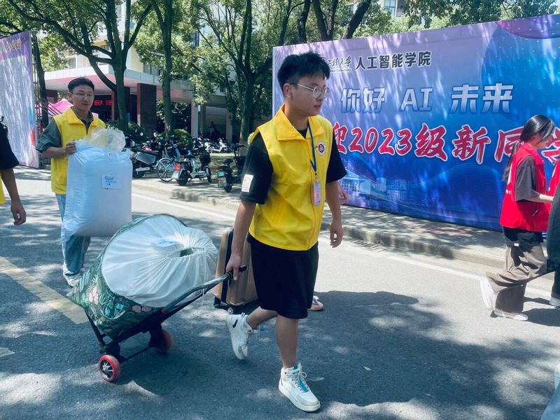 紧密落实学校统一部署,聚焦学院服务保障,迎新工作顺利进行。本次志愿服务共设新生引导、报到登记、集中搬运“三站式”服务站点。清晨,天刚刚蒙蒙亮,人工智能专业学生党支部的党员们便作为迎新第一梯队志愿者从新校区赶来,他们身着志愿服,集体佩戴党员徽章与志愿服务工作证,在迎新站点围绕新生注册、住宿安排、专业咨询等方面为新生和家长们服务。迎新过程中,党员们亮身份、做表率、见行动,以崭新的精神风貌,良好的文明素质,展现了新时代党员的责任与担当,为2023级新生树立了榜样。学院领导分别到服务点详细询问工作进展,了解各个时段的新生报到情况,对党员志愿者们提出具体要求,切实保障迎新工作有效进行。