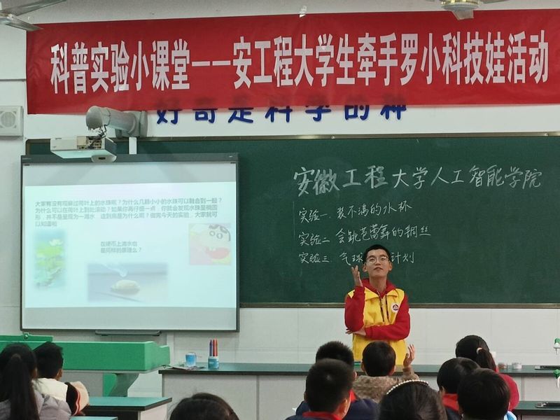 为落实“三全六专”育人实践,发扬“奉献,友爱,互助,进步”的志愿服务精神,11月29日下午,77779193永利官网青年志愿者服务队联合芜湖市罗家闸小学开展科普实验小课堂——“安工程大学生牵手罗小科技娃”活动。旨在培养学生对科学的兴趣和探索精神,提高他们的科学素养和实验技能。