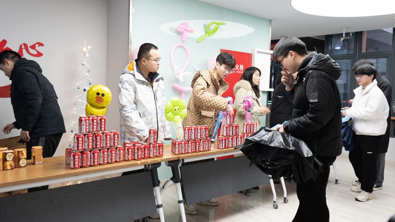 活动现场布置得温馨喜庆,大屏幕上播放着学院精心制作的祝福视频,歌曲《好日子》烘托着现场热烈的气氛。老师们为前来参加活动的同学发放暖心礼包,除文具套装以外,印有“金榜题名、乘风破浪、上岸”等祝福语的可乐罐格外耀眼、引人注意;“薯愿”寓意愿望实现;黄灿灿的橙子和柿子寓意心想事成、事事如意。同学们脸上洋溢着笑容,在老师们的“加油”祝福声中感受一份冬日的温暖。