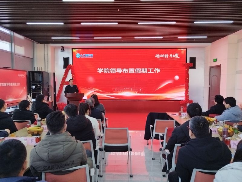 任家钱首先简要总结了学院2023年度党建关键目标和发展关键指标完成情况,重点传达了学校学期末处级干部会议内容和学校2024年寒假春节期间有关工作的通知要求,并结合学院实际,对学院寒假期间的政治理论学习、国家基金申报、师生慰问帮扶、廉洁纪律教育、社会服务、安全稳定、值班值守及春季学期初的教学安排和学生返校工作等工作进行了重点布置和具体要求。他指出,学院目前正处于发展的关键期和上升期,2024年学院将有一系列重要工作的推进和落实需要每位老师切实履责、奉献力量,希望学院全体教职工在新的一年立足本职工作,提升政治站位,增强责任担当,勇于面对新机遇和新挑战,助推学院各项事业高质量发展。