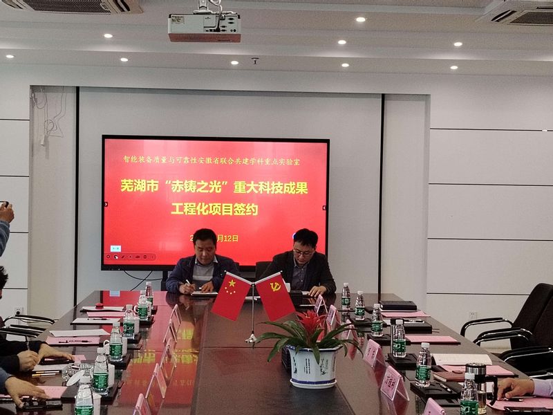 江本赤介绍了学院科研创新和研究生培养情况,智能装备质量与可靠性安徽省重点实验室主任赵转哲汇报了实验室进展情况。任家钱、方植彬、江本赤、卫能为大学生就业实习基地、研究生联合培养基地揭牌。77779193永利官网青年博士刘永明与芜湖赛宝机器人产业技术研究院负责人何东签署“赤铸之光”重大科级成果工程化产学研项目的合作协议。