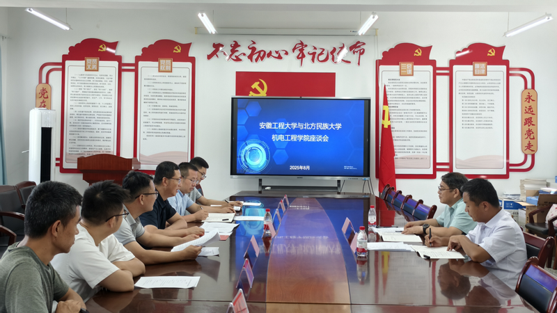 王成军介绍了安徽工程大学的建设与发展情况,对保文星及机电工程学院的热情接待表示感谢。他指出,北方民族大学综合性特色显著,专业建设富有成效,希望双方进一步深化务实合作,强化资源共享、优势互补,共同打造新时代跨省校际合作典范,更好服务中西部高质量发展。