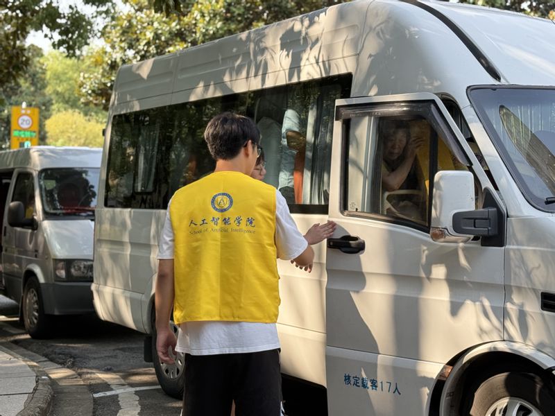 为解决新生行李搬运难题,学院专门安排“摆渡车”,打通从报到点到宿舍的“最后一公里”。部分提前报到的2025级新生,主动申请加入志愿服务队伍。在学长的指导下,快速熟悉工作内容,协助发放物资、引导新生,从“被服务者”转变为“服务者”。新生们用青涩却认真的行动传递温暖,不仅加快了自身对校园的适应,更在互助中凝聚起青春力量,展现出新一代AI学子的担当。