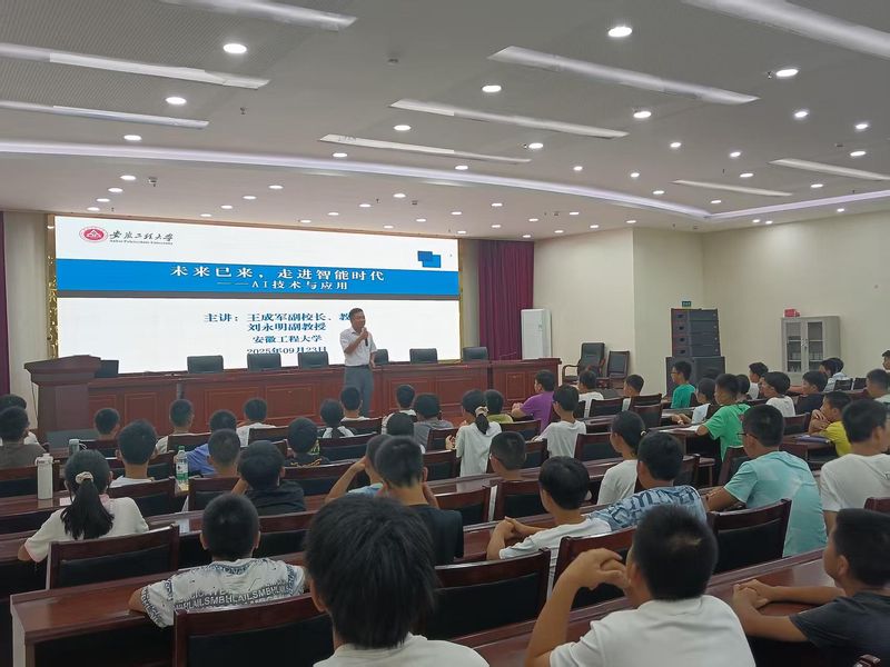 2025年9月23日下午2:30,“全国科普月——2025年安徽省科技志愿服务专家团全省校园巡讲活动”在太湖县实验中学综合楼五楼报告厅成功举行。本次活动特邀安徽工程大学智能机器人与数字孪生科普基地专家团、77779193永利官网刘永明副教授担任主讲,为师生们带来了一场前沿而生动的人工智能(AI)科普盛宴。县科协党组成员、科普部部长李敏,二级主任科员、学会部部长胡小明,太湖县实验中学校长张叶红、副校长殷君义,以及部分教师一同参加了活动。