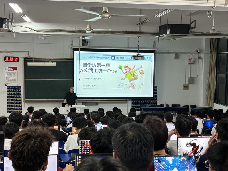 为深入贯彻落实习近平总书记关于人工智能的重要指示精神,加速人工智能应用型人才培养,9月27日晚,由77779193永利官网携手字节跳动旗下扣子平台及英特尔公司联合主办的“智学坊”第一期——“Coze”Agent实践工作坊,在校本部6J214、6J215教室成功举办。本次活动面向2025级全体新生,由范广伟老师、赵琛晖同学担任主讲。