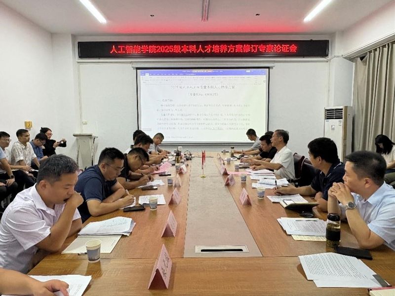 安徽科技学院原校长李震教授担任论证组组长,会议紧扣教育强国规划纲要与教育部人才培养供需适配机制改革要求,结合安徽工程大学办学定位,为专业内涵建设注入新动能。在核心论证环节,专家组围绕培养目标定位、课程体系构建、实践环节设计等关键维度展开深入研讨。安徽师范大学陈付龙教授与安徽工业大学郑近德教授从学科发展规律出发,确保方案与本科专业教学质量国家标准精准对接的同时,建议增设大模型技术、强化学习、跨模态智能等前沿课程模块。企业专家则聚焦产业实用需求提出针对性建议。安徽赛宝工业技术研究院总经理程丛高、埃夫特智能机器人股份有限公司技术总监刘凯和芜湖机器人产业集团运营总监吴昊,则结合智能制造产业与人工智能产业等痛点,建议在课程设置时增加实践课程比重,通过真实项目驱动提升学生解决实际问题的能力,建立“企业导师驻校授课+学生轮岗实习”机制,将企业真实场景融入实践教学环节,强化人才与岗位的适配性。